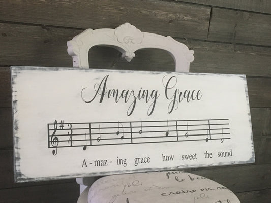 Amazing Grace Sheet Music Hand Painted Farmhouse Style Sign